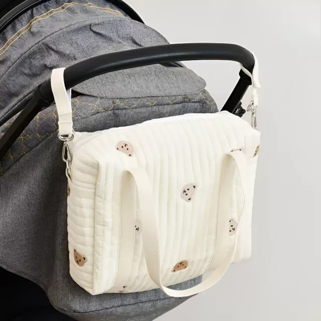 This bag stands out because it offers a perfect balance of cuteness, comfort, and functionality. The embroidered bear pattern brings a unique, heartwarming charm, while the roomy interior supports daily errands, travel days, park walks, and family outings. It is designed to make parents feel prepared, organized, and stylish all at once.