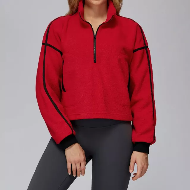 Women’s Winter Fleece Running Jacket – Windproof Warm Stand Collar Top